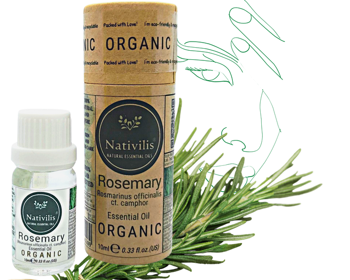 Nativilis Organic Rosemary Essential Oil (Rosmarinus officinalis) - 100% Natural - 10ml (GC/MS Tested)